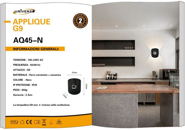 UNIVERSO APPLIQUE DA MURO USO INTERNO AQ45-B A LED G9