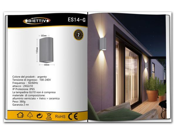 UNIVERSO APPLIQUE DA MURO USO ESTERNO ES14-B A LED GU10