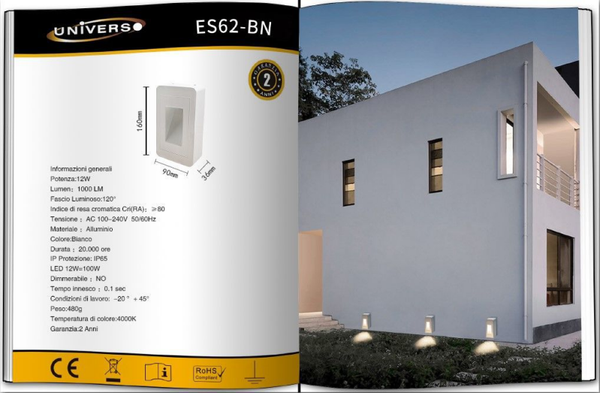 UNIVERSO APPLIQUE DA MURO USO ESTERNO ES62-BC A LED BIANCO