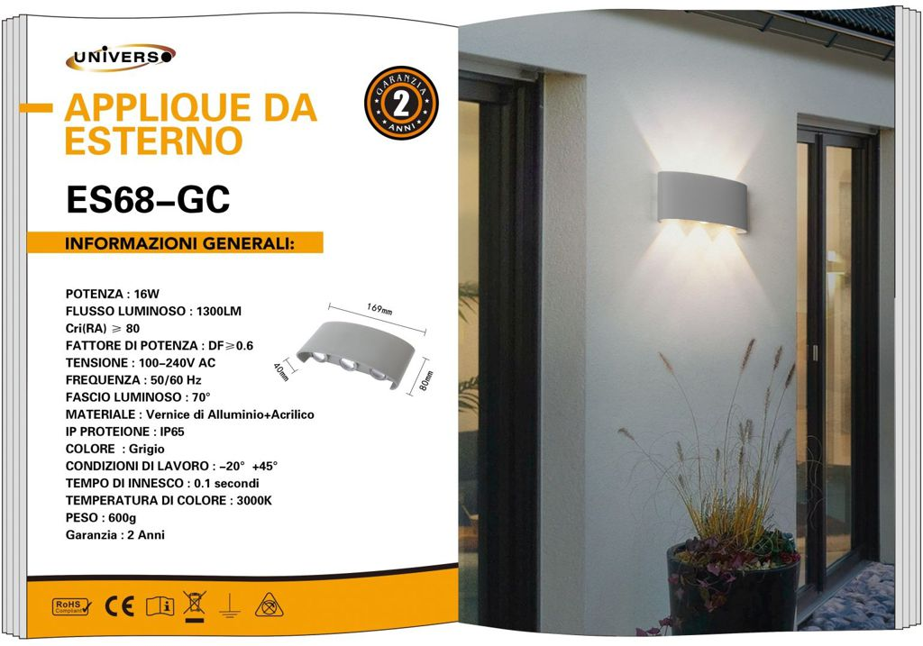 UNIVERSO APPLIQUE DA MURO USO ESTERNO ES68-GC A LED GRIGIO