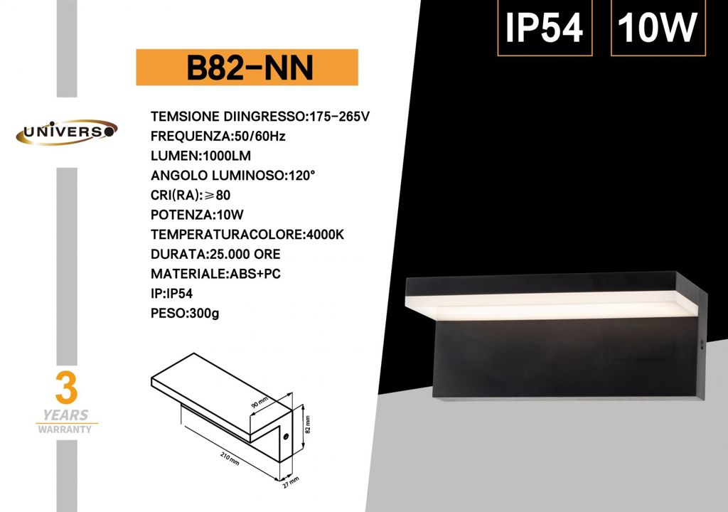 UNIVERSO APPLIQUE DA MURO USO ESTERNO B82-NN A LED