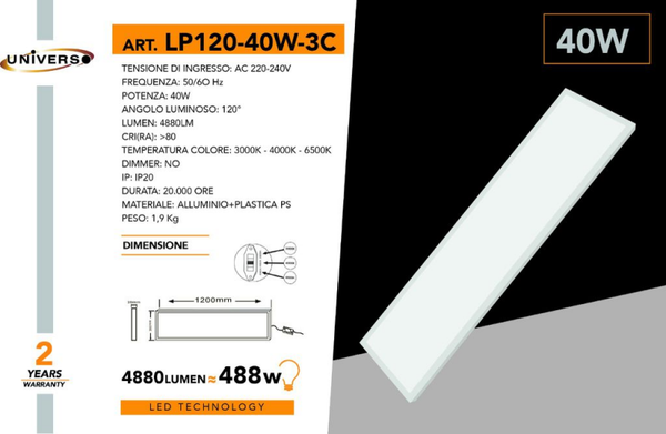 UNIVERSO PANEL LED LP120-40W-3C A LED 6500K-4000K-3000K REGOLABILE