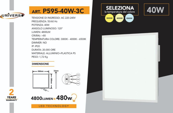 UNIVERSO PANEL LED P595-40W-3C A LED 6500K-4000K-3000K REGOLABILE